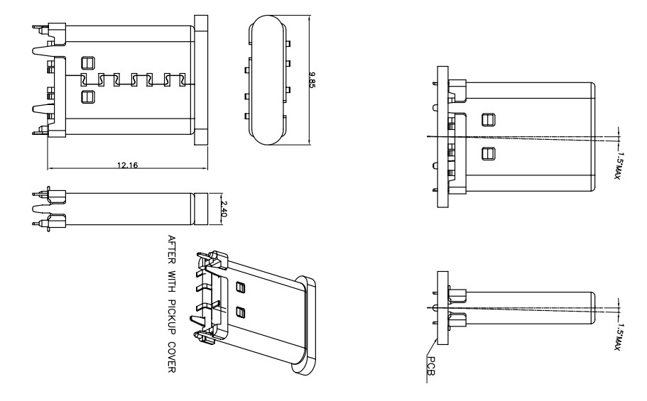 产品规格 TYPE C 公头 6P SMT直立式款 Molding结构